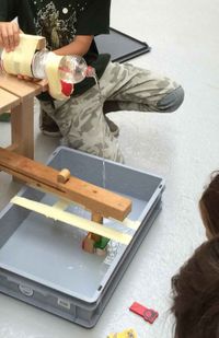 Im go tec! Labor geht’s rund! Gemeinsam bauen wir riesige Kettenreaktionen – wie die Künstler Fischli und Weiss. Ein Ball rollt los, stößt ein Buch um, das einen Abfallsack zum Fliegen bringt – und schon wird eine Kiste mit Wasser gefüllt!